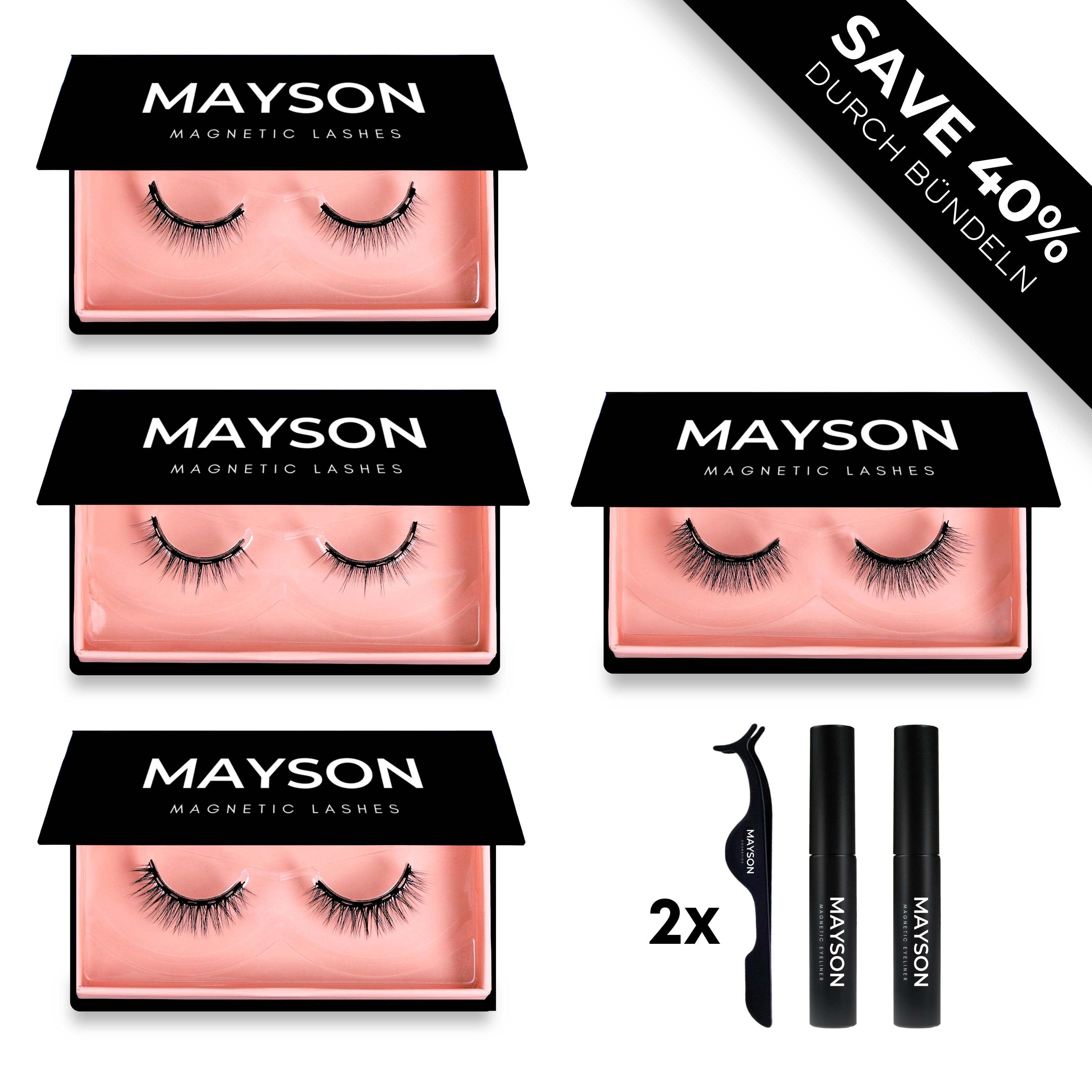 Wir empfehlen nicht, Mascara während des Tragens unserer magnetischen Wimpern aufzutragen. Der Kontakt mit den Wimpernhärchen kann sie frühzeitig beschädigen und zu Haarausfall führen. Außerdem ist Mascara nicht nötig – unsere Wimpern lassen deine Augen bereits strahlen!